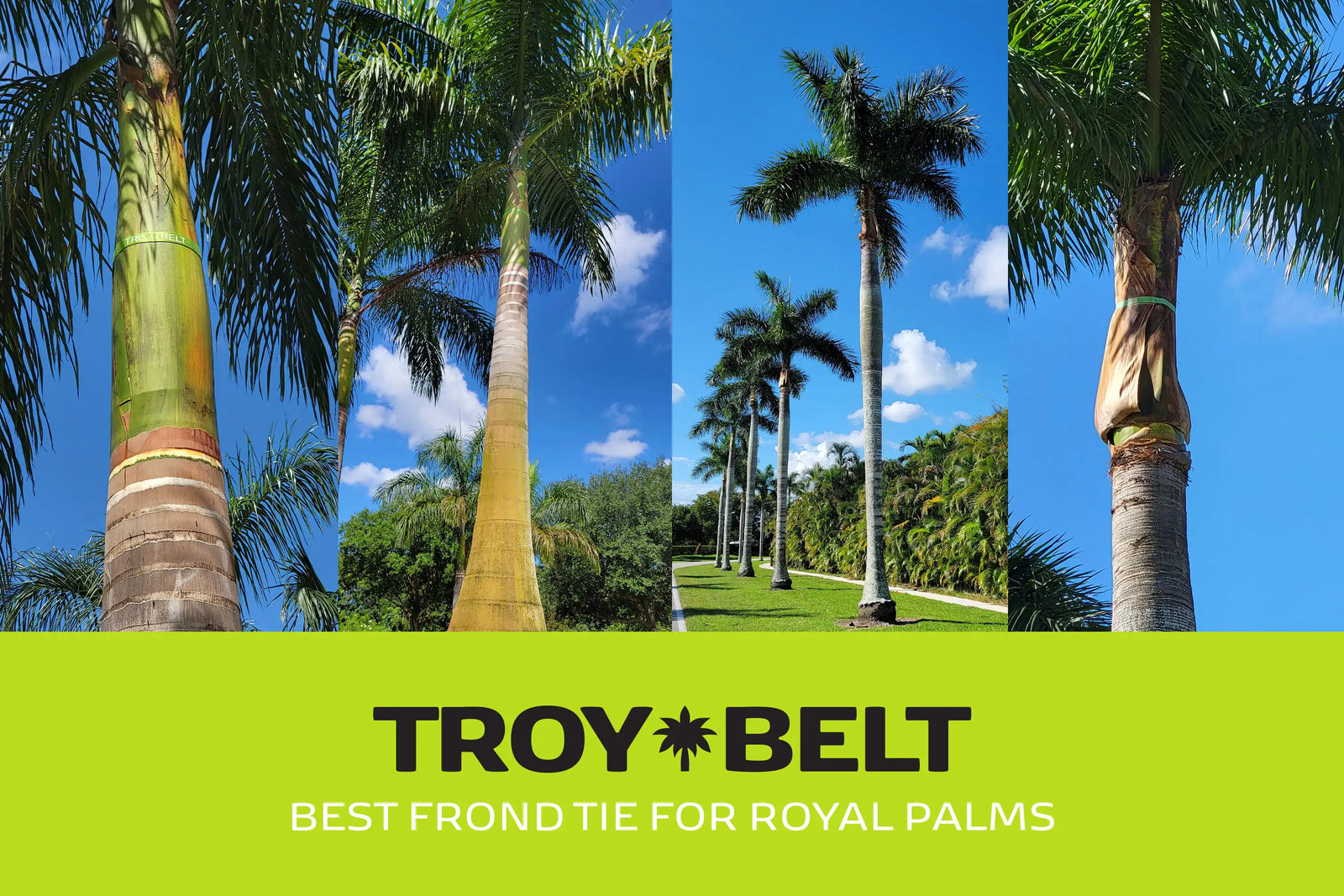 The Troy Belt is the first strapping system specifically designed to prevent shedding royal palm fronds from falling. The Troy Belt is strong, durable and is easy to use. A tree service expert can install it in less than a minute.